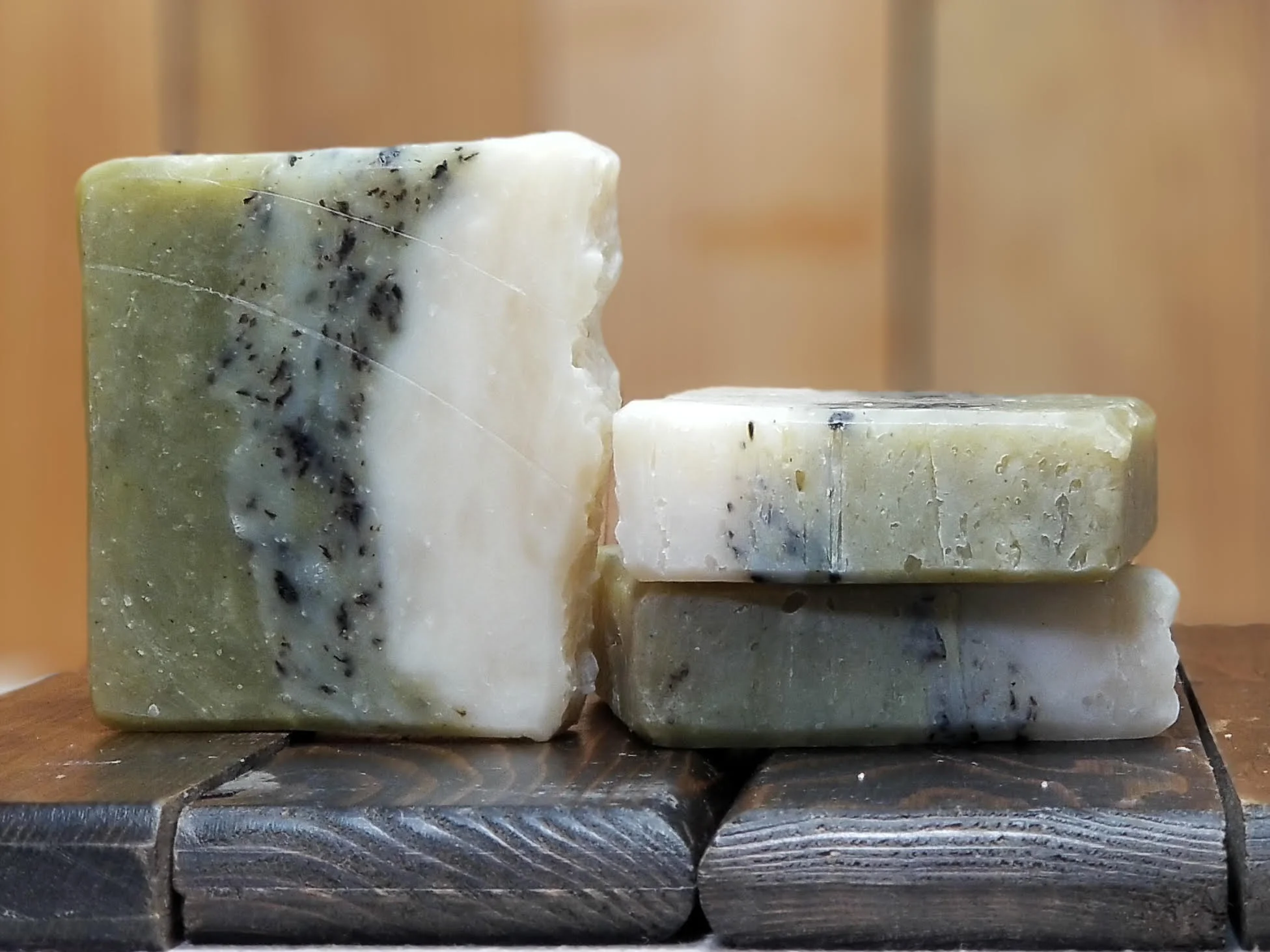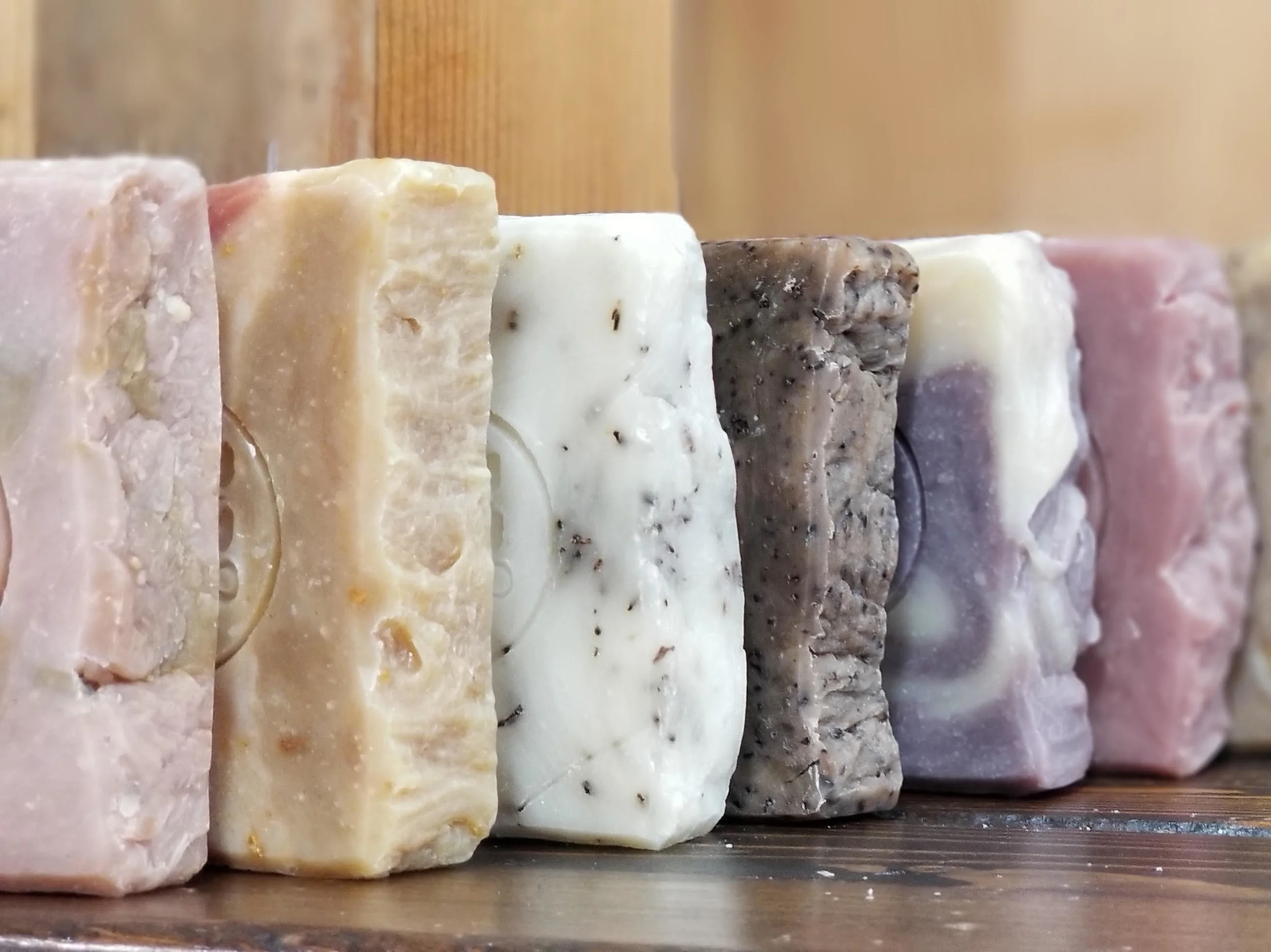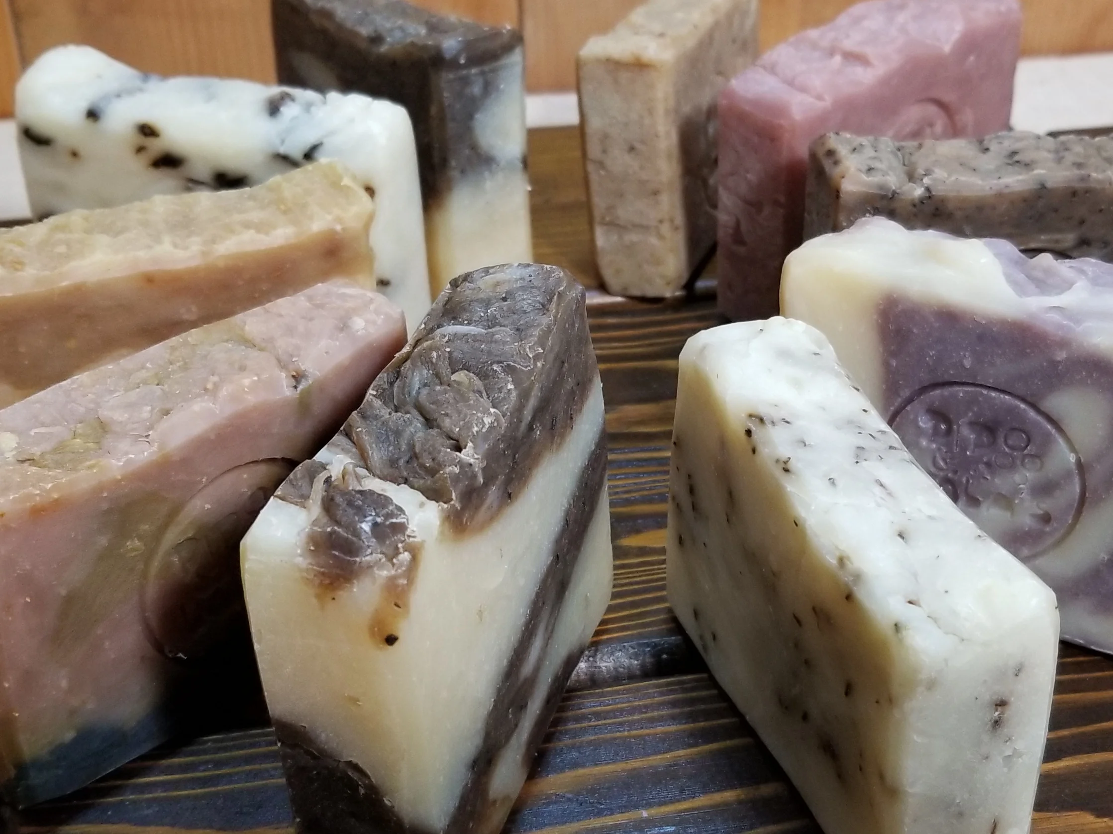 We have two major soap lines: The first one is our 100% natural line, which features all essential oils, food additives, and natural botanicals. These include hand and body, shampoo, facial, and shave bars.
