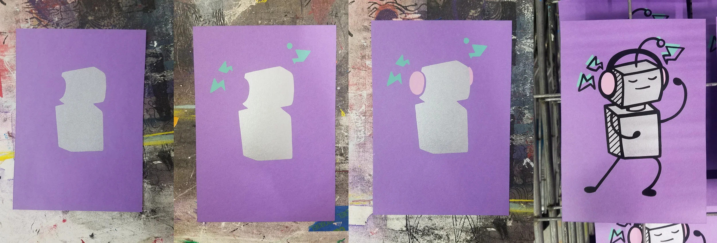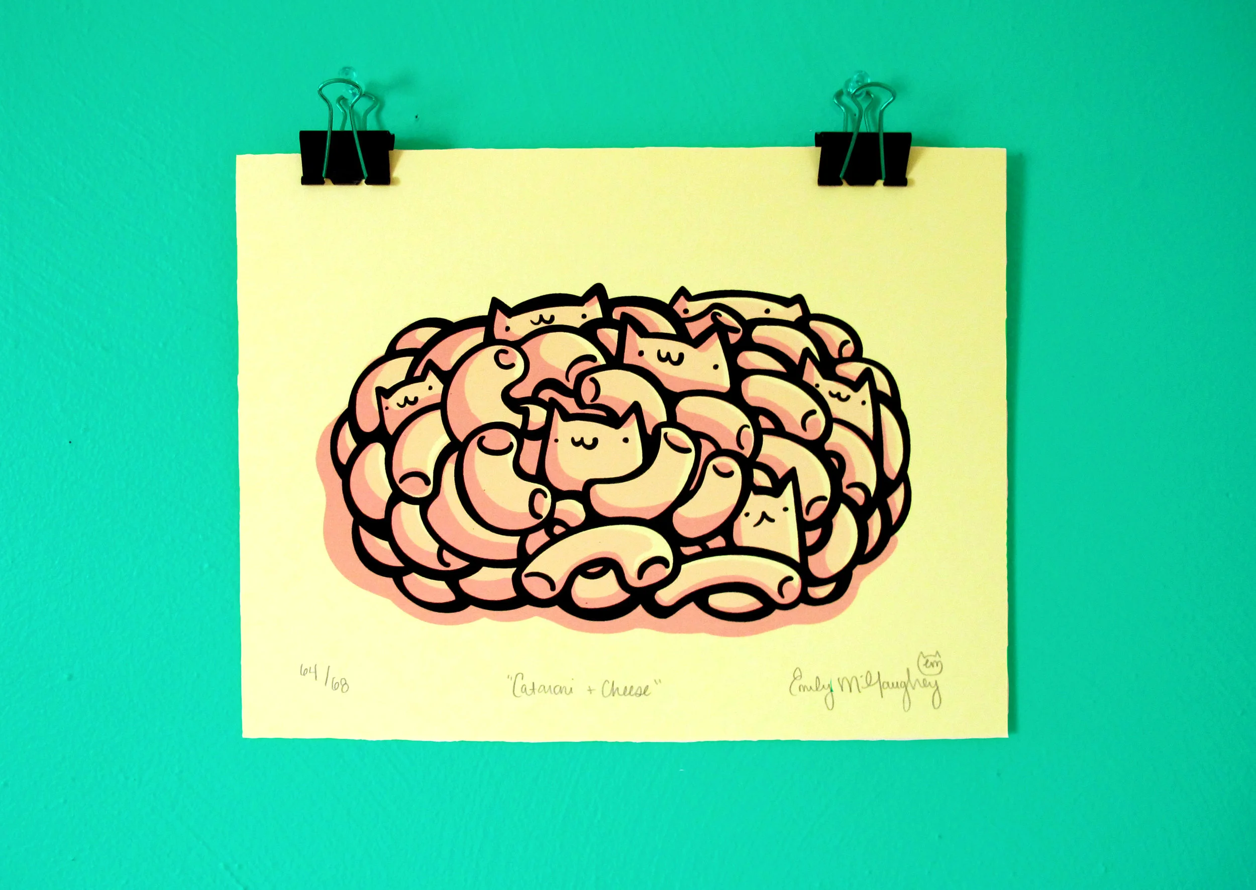 SP: I love your screen prints, and as you know, I have a couple on my cat art gallery wall! Can you tell me about your creative process for making a screen print, from idea to market?