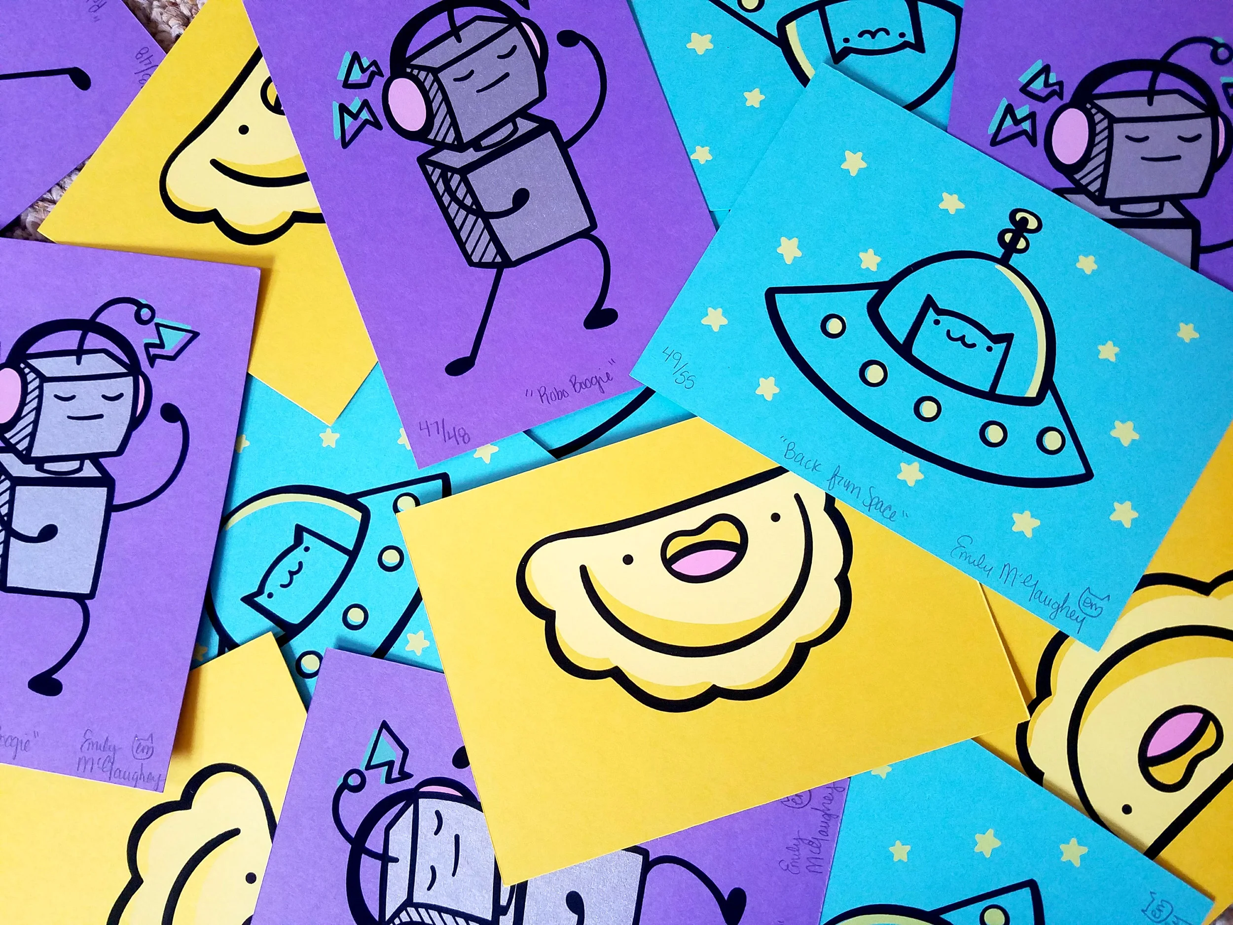Emily McGaughey: Okay! I've always been drawing since I was little, and I took a lot of art classes in high school in Titusville, PA where I grew up. I went to college at Edinboro University. I originally went for animation, but I switched to Graphic Design and Printmaking later on. After college, I moved to Pittsburgh. Outside of making, I love watching cartoons, playing video games, reading comic books and cooking!