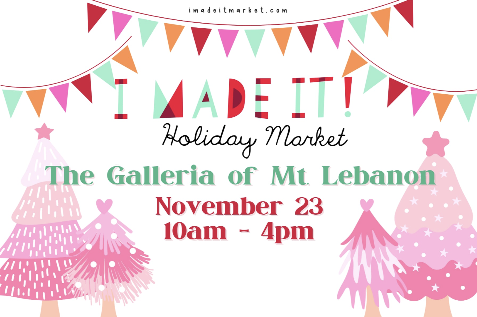 We’re excited to bring I Made It! for the Holidays to Pittsburgh’s South Hills. In 2020 we opened our first pop up retail shop at The Galleria of Mt Lebanon and we are so happy to return for a one day pop up holiday marketplace.